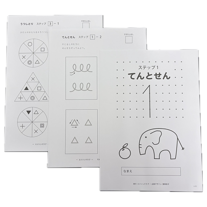 お手本をよく観察し、点や線の位置・形・長さに気をつけながら正確に写しとる学習です。形のつながりや位置関係を考えることで、観察力と集中力を育てます。