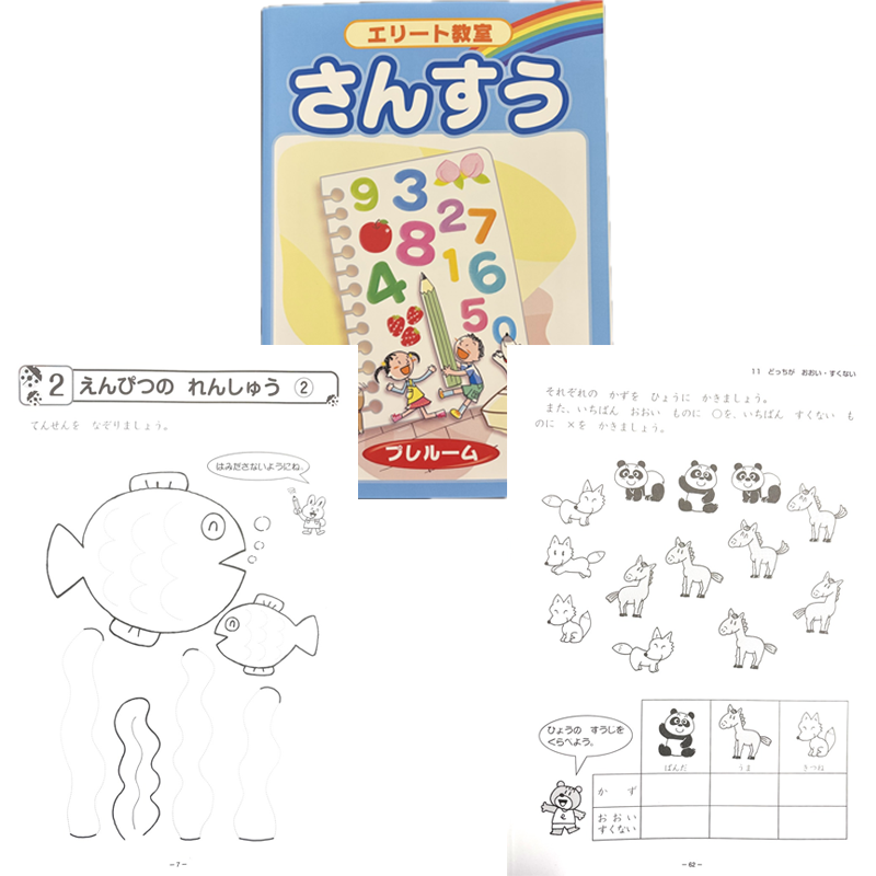 ひらがなが書けなくても大丈夫!図やイラストを使いながら全ての土台となる「すうじ」や、計算の考え方を身につけます。線や数字を書く事で運筆の力も育成します。