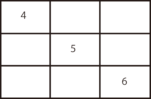 たてにたしても、よこにたしても、ななめにたしても、すべて15になるようにしましょう。
